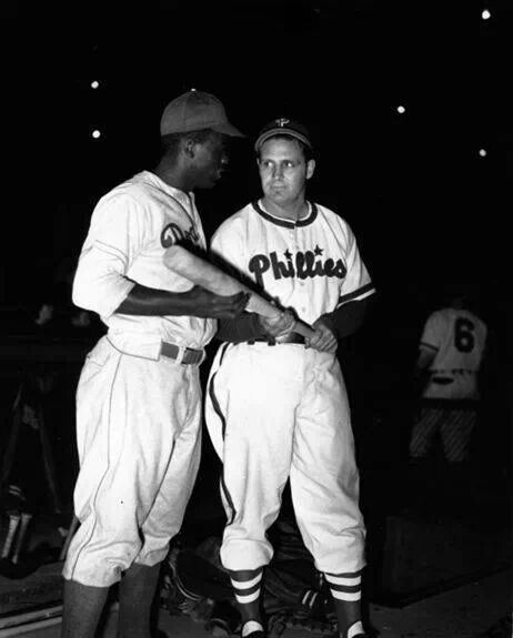 Not Minnesota or Giants related, but on May 9, 1947, Phillies manager Ben Chapman was made to publicly apologize to Jackie Robinson for hurling racist slurs during the teams’ earlier matchups. (A scene that’s dramatized in the 1950 movie The Jackie Robinson Story with the real Robinson; it’s made MUCH more explicit in the 2013 Chadwick Boseman version, 42.) The two men posed for newspaper photos, which Robinson later said was awfully hard to do. Chapman does NOT look real thrilled in this picture: