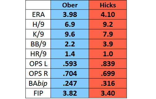 So far this year (7 starts), Hicks’s ERA is 6.03, FIP 3.40. Some bad luck, maybe.