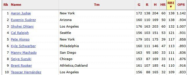 Over the past 365 days, no player in the majors has driven in more runs than Geno Suarez’s 138. That’s the same number as Aaron Judge, who has played in a dozen more games than Suarez. Eugenio is also one of only four players to have hit fifty home-runs in the past year, alongside Judge, Shohei Ohtani and Cal Raleigh. S’funny, you hear an AWFUL lot more about the other three, don’t you? I also note, just outside the top ten (#12, to be precise) is Josh Naylor, and I’m delighted to see him back in the line-up tonight, even if it’s as the designated hitter. Hopefully the neck/back problems which have sidelined him of late have been fully addressed, and he doesn’t end up being yanked mid-game, like on Friday.