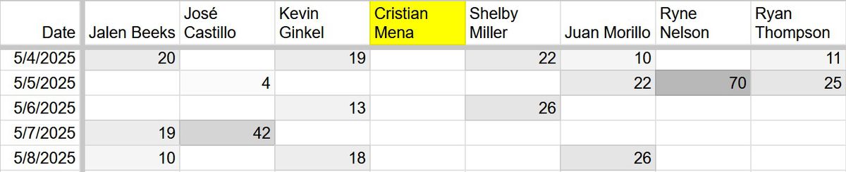 Depending on how Eduardo Rodriguez goes tonight, I’d not be surprised to see Cristian Mena in the game. As the chart above shows, he hasn’t pitched since being called up. He is basically here as long relief coverage until Monday’s spot starter, Ryne Nelson, is able to throw again, and he should be fully available tomorrow (the expected return of Corbin Burnes to the rotation). With Kendall Graveman getting nearer a return, I’d expect Mena’s roster spot will be used for him. Graveman will pitch tonight down in Reno, and if that goes well, I’d expect him to be called up over the weekend. So it could make sense to use Mena’s arm while it’s still here. But it will depend on the game situation.