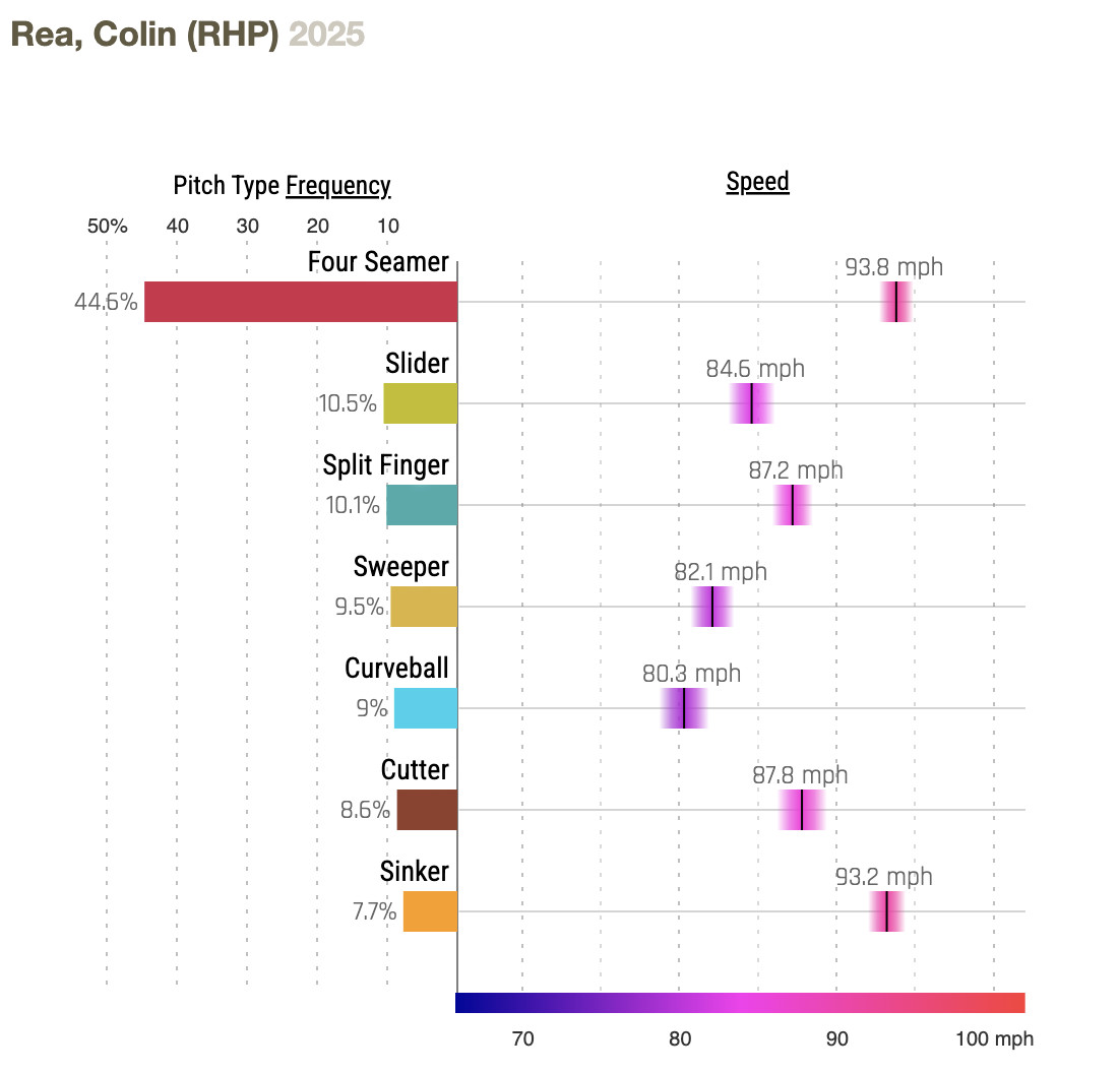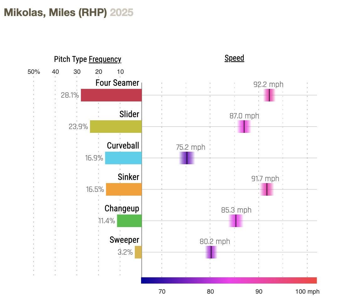 Last year he faced the Cubs four times and had a 5.82 ERA in 21⅔ innings, with four home runs allowed (two of those by Pete Crow-Armstrong). Keep that up, Miles.