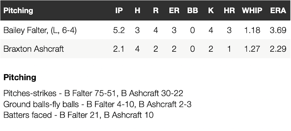 “Yeah, he’s hot. He’s hot this year. What’s he got now, 35?” Falter would ask related to Raleigh. “Just fell behind on him. Missed execution. Ball needs to be up. I got him the one time, and it was hard for me to get the ball up again after that. He took advantage of it.”