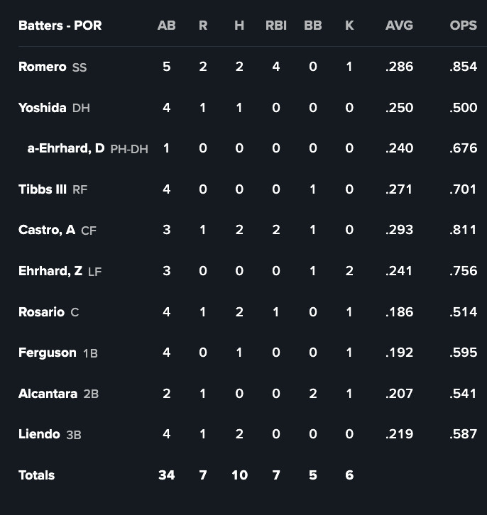 Especially with some run support, which the Sea Dogs provided plenty of due to some (don’t say fireworks, don’t say fireworks, don’t say fireworks) potent at-bats from Mikey Romero! The leadoff man went 2-for-5 and notched his eighth home run of the season, driving in four of Portland’s seven runs. Romero’s OPS improves to a stout .854. Masataka Yoshida added a hit of his own and Allen Castro and Max Ferguson gave the team some spark at the plate, as well; the former had two hits and the latter had the team’s only other extra-base hit.
