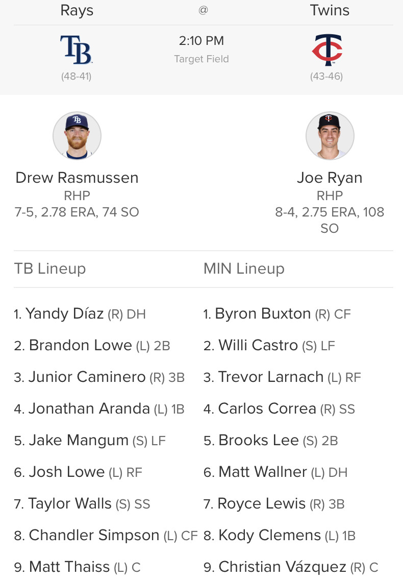 With Joe Ryan on the mound and looking for the sweep this Fourth of July weekend-ender, it could be another small-ball race to a few runs for the victory!