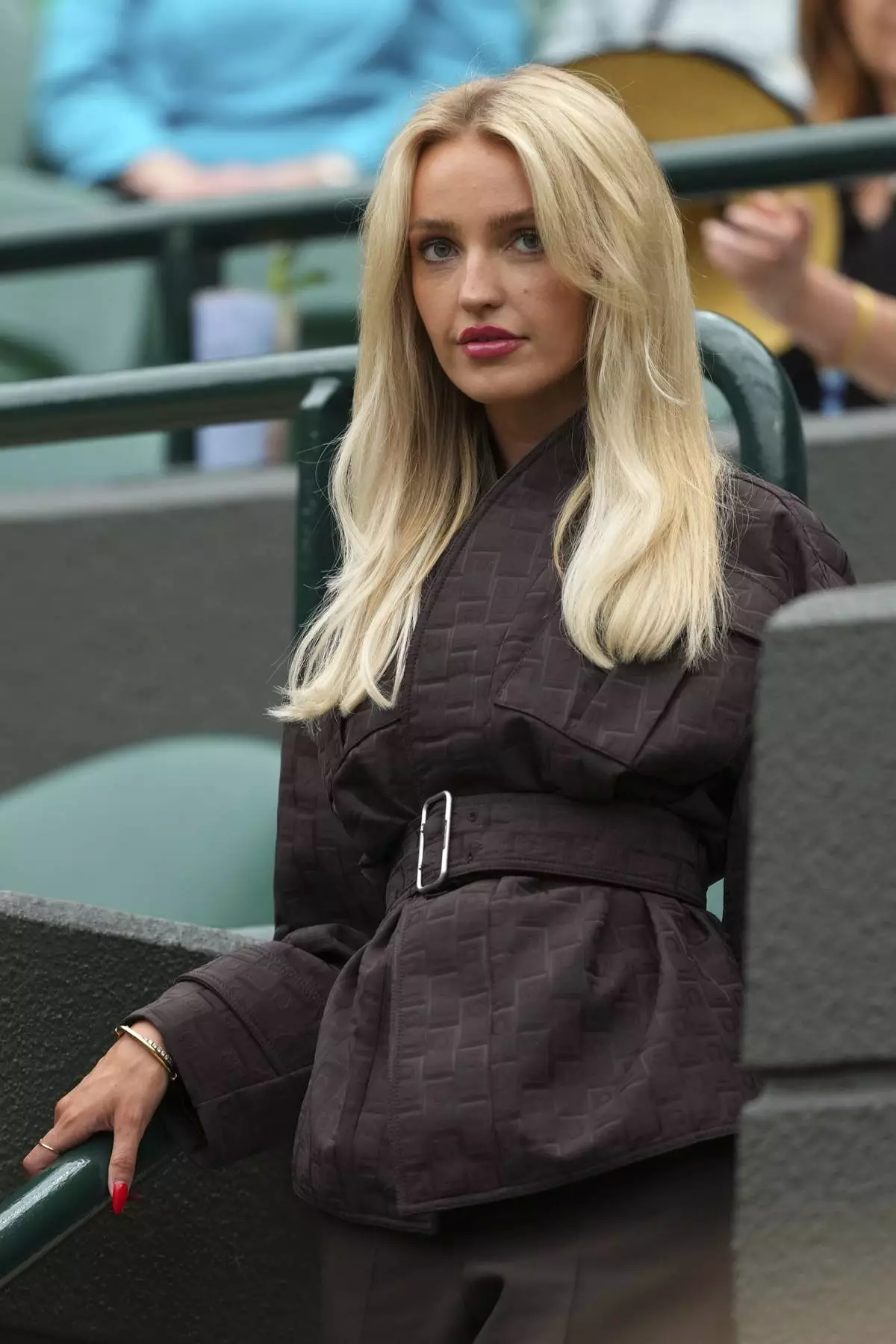 Taylor Fritz’s girlfriend, Morgan Riddle, arrives to watch Taylor Fritz of the U.S. playing Jordan Thompson of Australia for the men’s singles fourth round match at the Wimbledon Tennis Championships in London, Sunday, July 6, 2025.(AP Photo/Joanna Chan)