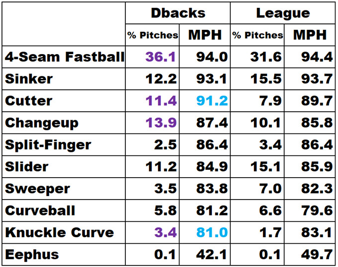 This season, of the three types of fastballs, the Diamondbacks had the best results from cutters, which averaged 1.5 MPH faster than league average.