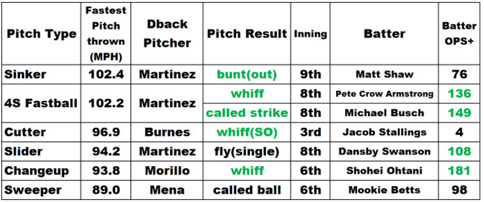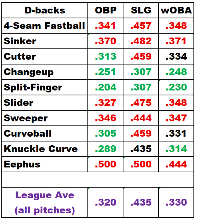 The following table shows results for each type of pitch thron by the Diamondbacks.