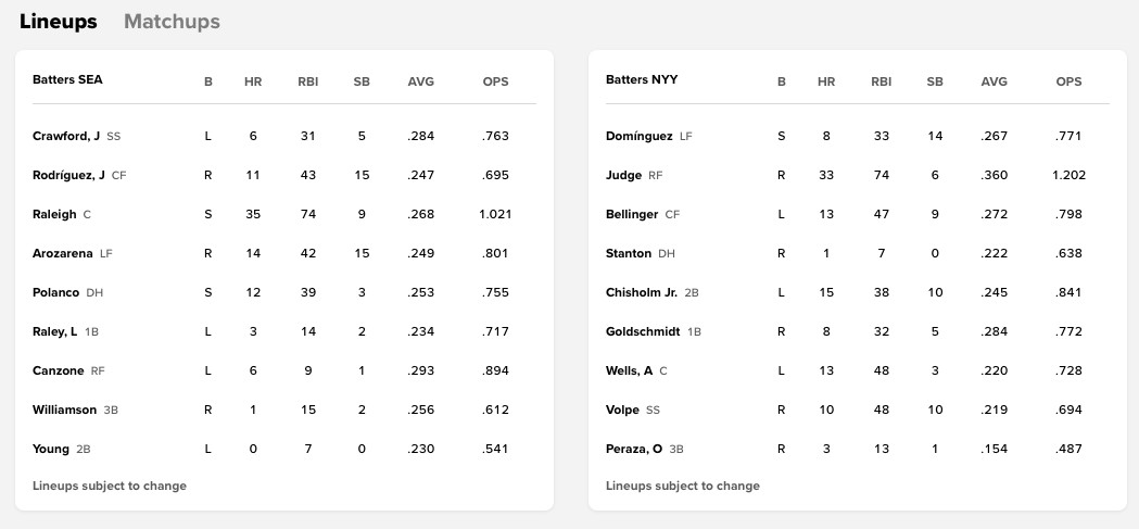 This is also a chance for Cal Raleigh to gain some ground on Aaron Judge in the (f)WAR for AL MVP. Raleigh closed the gap a bit with a scorching June that earned him AL Player of the Month, while Judge “slumped” by his standards. But Judge has gotten hot again with three home runs in six games in July. Raleigh still leads Judge by two home runs.
