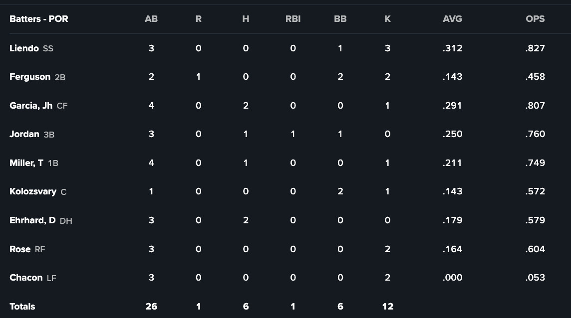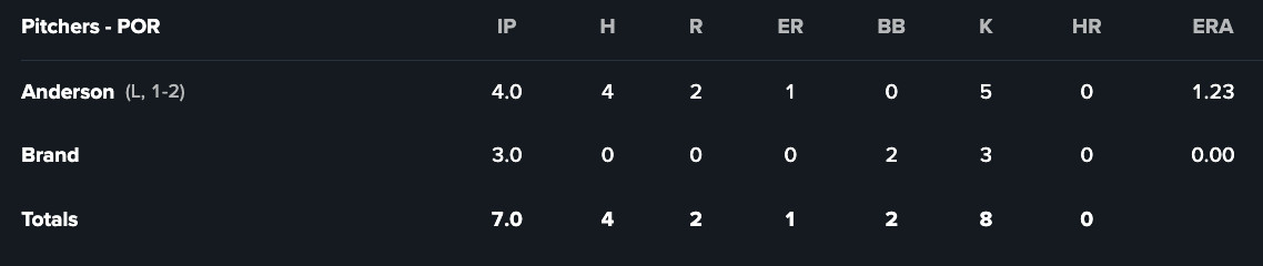 By all accounts, Jack Anderson and Jonathan Brand had a fantastic night pitching and were victims of the Portland bats not getting much going, leaving ten on in seven innings. Anderson let a run score by a botched pickoff attempt, and that may have allowed the game in a different direction if executed, but there’s also four innings to get a run at that point.