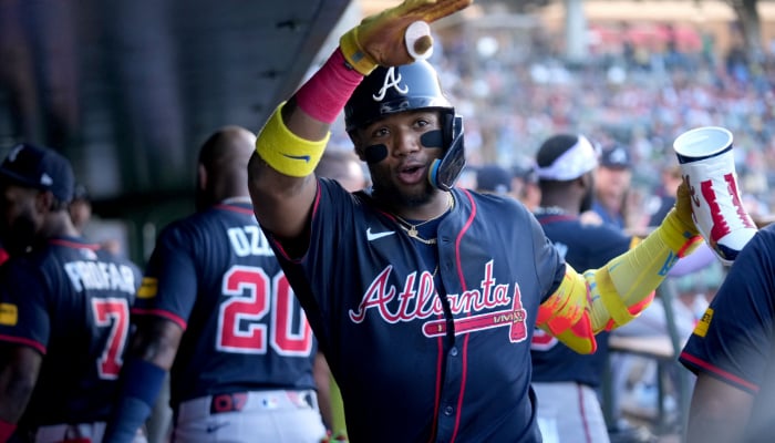 Atlanta Braves right fielder Ronald Acuna Jr. celebrates after hitting a home run against the Athletics in the first inning at Sutter Health Park on Jul 9, 2025. — Reuters