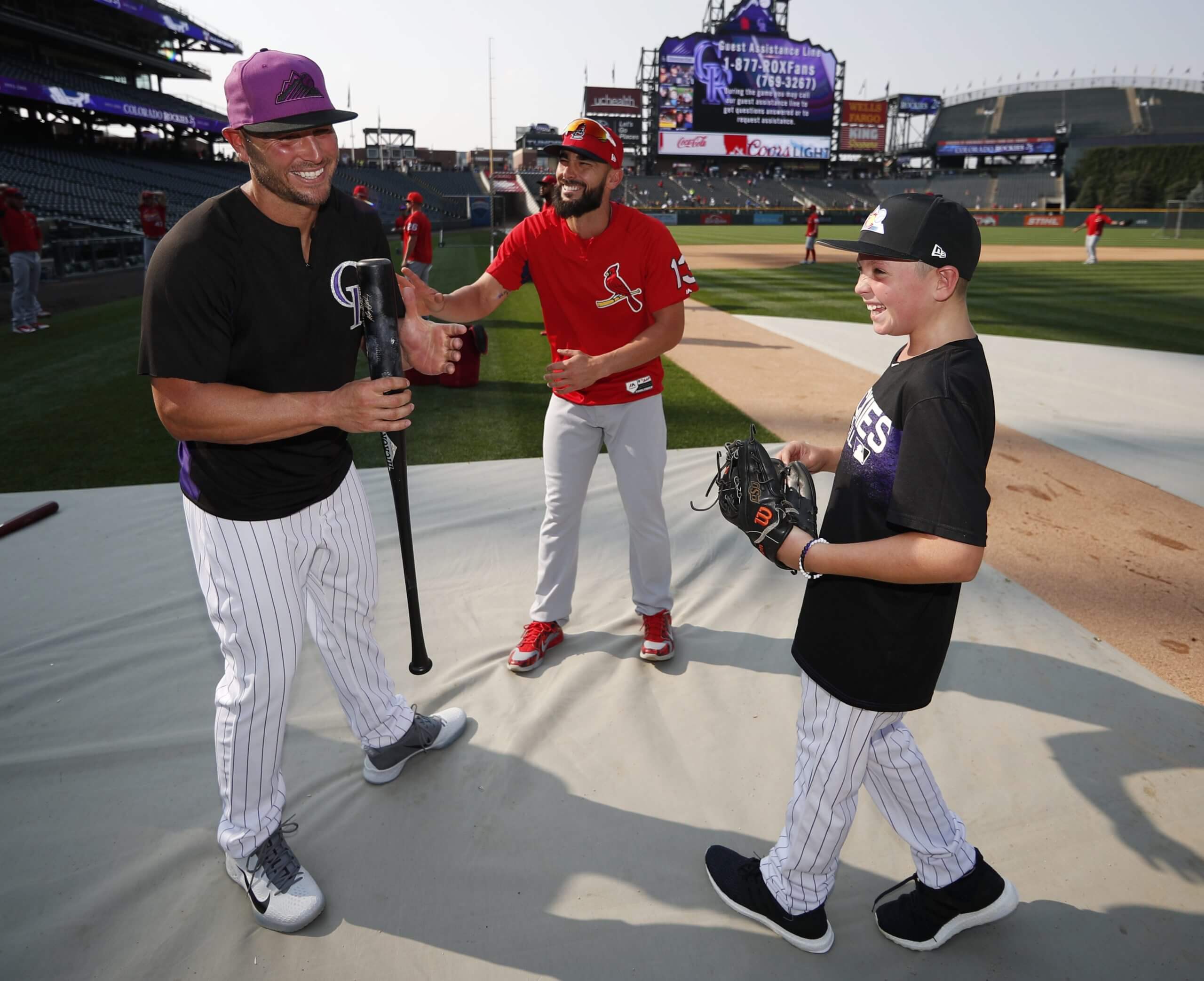 Matt would bring Ethan around the field during his days with the Rockies, where friends like Matt Carpenter helped mold him as a young player. (AP Photo / David Zalubowski)