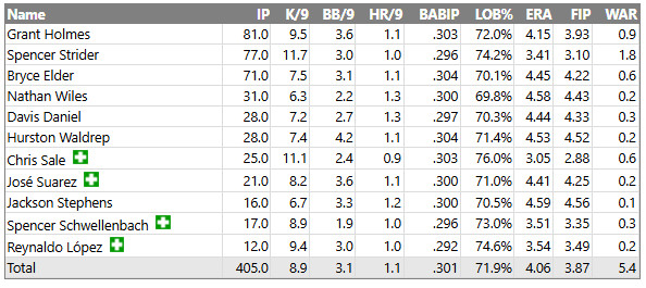 Nathan Wiles took Fuentes’ place. So, the Braves could just give Wiles a bunch of starts and not worry. But, when I looked at the FanGraphs Depth Chart for the Braves for the rest of the year, I chuckle: