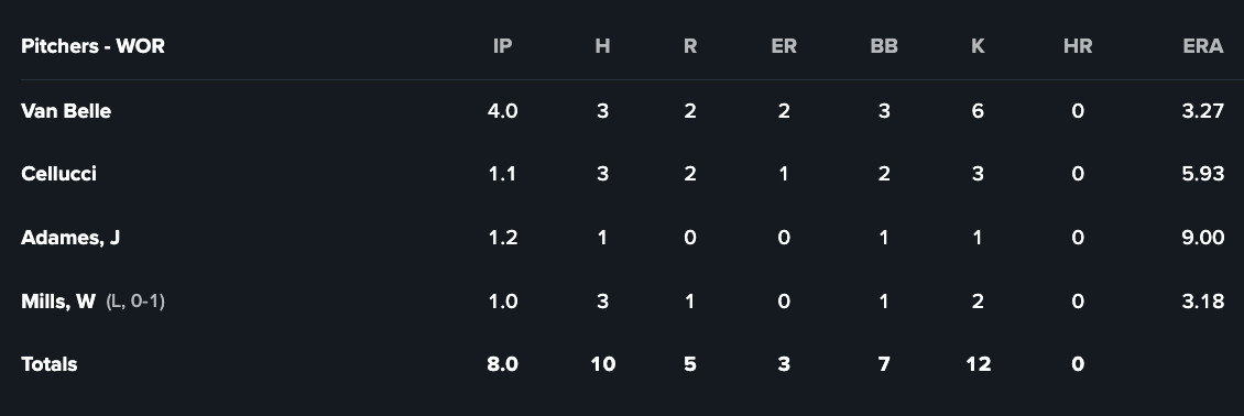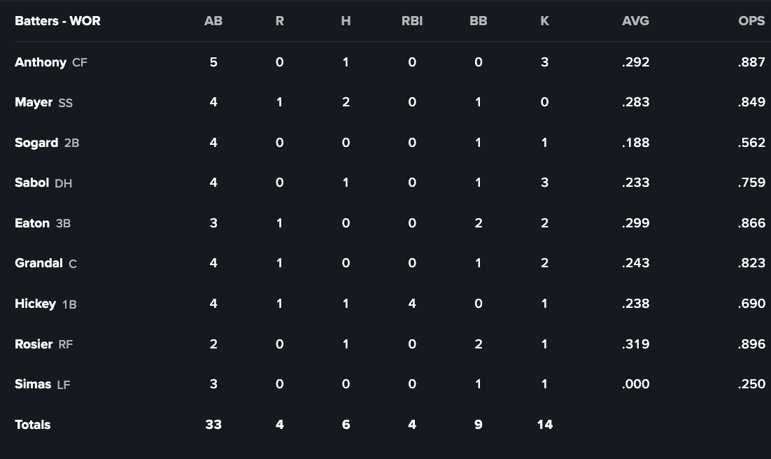 The WooSox got walked-off again on Saturday. Honestly, though, following a performance where all three defensive errors came from pitchers (two on pickoff attempts, one on an errant throw to first) and on a night when the team stranded eleven men despite garnering just six hits, the game shouldn’t have even been this close. The offense can attribute this to a very strong sixth inning topped off by Nathan Hickey’s grand slam to make it a tie game. Hickey, who tracks as a first baseman who knows how to play first base, is a slept-on power hitter. For what it’s worth: Marcelo Mayer was the only Worcester batter to get the Iron Pigs (Phillies AAA) for multiple hits, and scored on that aforementioned Hickey bomb.
