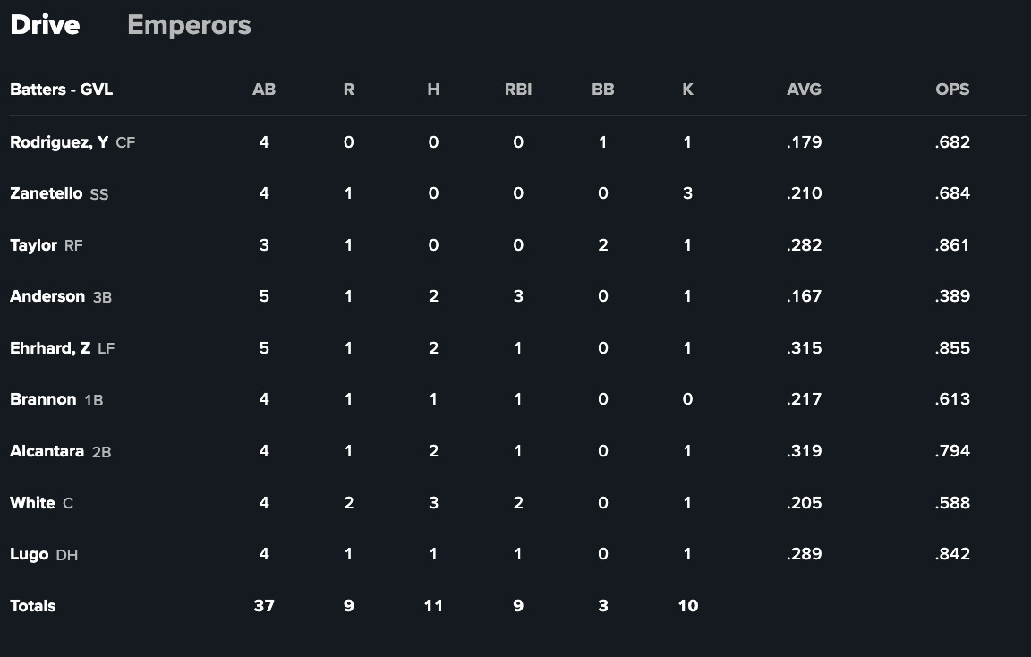 The interesting thing in this contest is that, on a Franklin Arias night-off, three electric hitters for the Drive all went 0-for, and every other batter recorded at least one hit. This include’s last year’s ninth-round draft pick, catcher Hudson White, a strong defensive guy who generally has not much power to speak of. But he sealed this game away with a two-run shot in the 8th inning, his first home run in the pros. On the mound, John Holobetz, the additional PTBNL in the Quinn Priester for Yophery Rodriguez deal, wasn’t exactly dealing in his five-innings, giving up four, but only one run was earned and he got the decision win. Meanwhile, Matt McShane STILL has allowed just one run on the season even following a promotion to Greenville from Salem, striking out four closing this one against the Braves’ High-A squad.