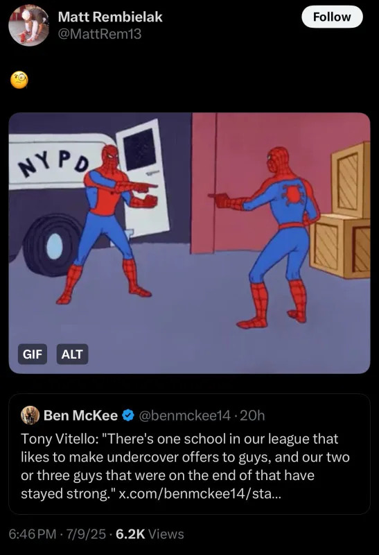 College sports are a cutthroat world these days thanks to backroom NIL deals and behind-the-scenes transfer pitches. Everyone is trying to gain an edge. Whether Vitello and his staff are involved in any of those shenanigans is unclear, but I don’t think anyone in the sport is above it right now.
