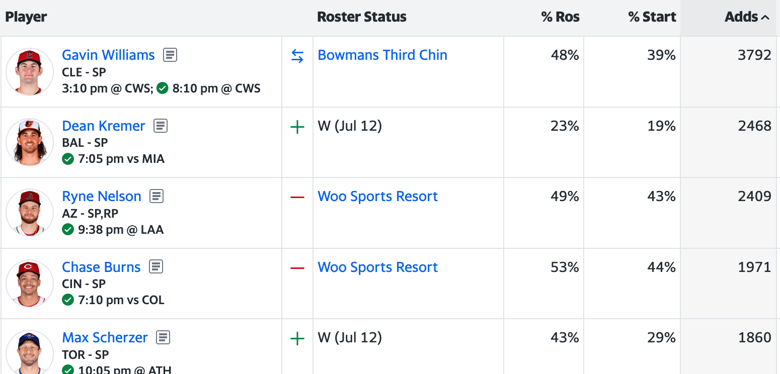 It was an all starting pitcher day yesterday, with several big-name players getting picked up for their starts (and potentially beyond).