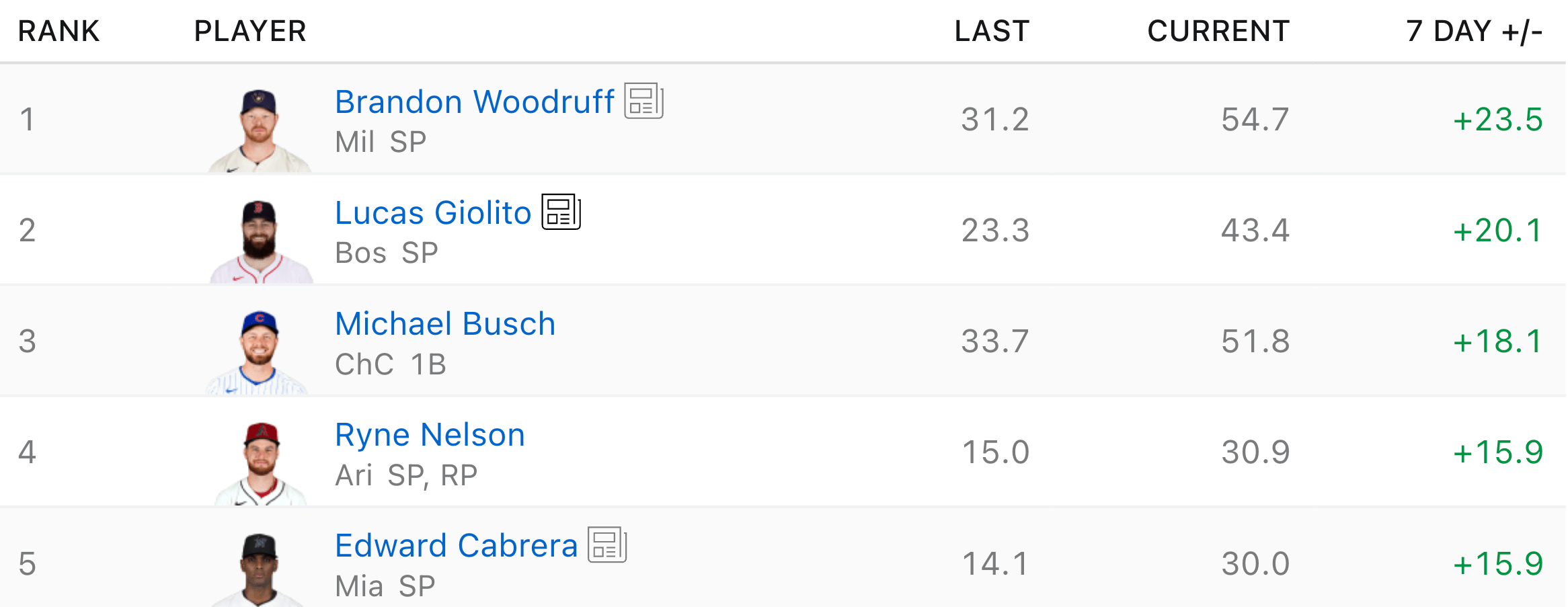 The top-added players on ESPN are mostly the same as yesterday, except with Ryne Nelson snagging the spot from Ceddanne Rafaela. We spoke about Nelson already, as he is an incredibly popular option right now and justifiably so.