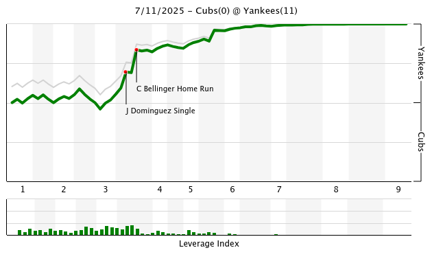 Game 94, July 11: Yankees 11, Cubs 0 (55-39)