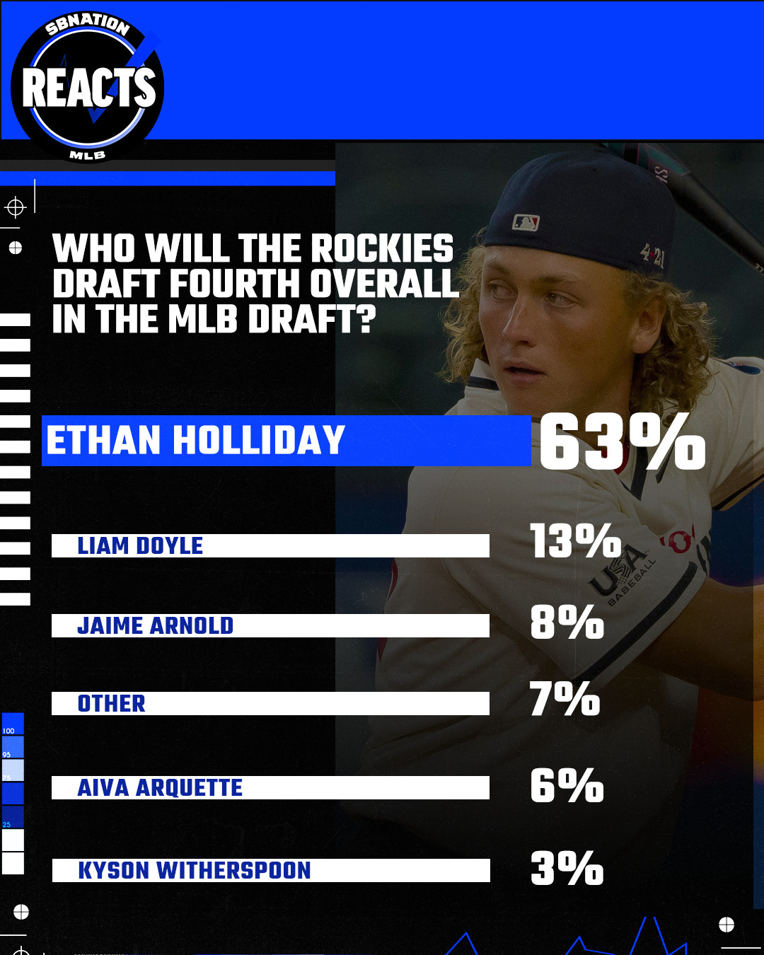 The overwhelming majority of you believe that Ethan Holliday — shortstop from Stillwater High School in Oklahoma and son of former Rockies star Matt Holliday — will be the one that the Rockies take in the first round.