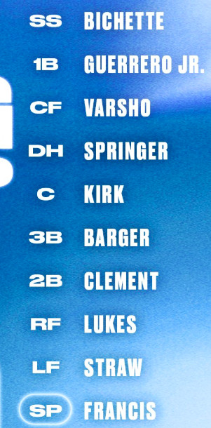 And here is Toronto’s lineup, once again trimmed down from the enormous graphic they posted on Twitter.