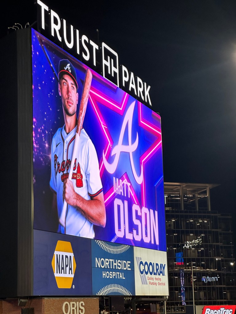When he was done Olson was greeted by teammates and fellow all-stars Ronald Acuna, Jr. and Chris Sale.