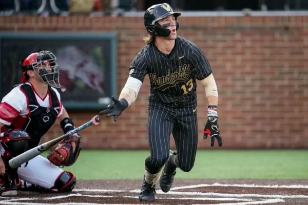 In the words of motoring journalist Jeremy Clarkson, “Speed and power”. Commodores shortstop Jonathan Vastine has both, as he hit 19 homers in his last two collegiate seasons. He also stole 21 bases, only caught six times. Vastine has speed and power at the plate that make him a threat to reach base regardless of how deep the lineup he is a part of is. He also has a strong approach at the plate, not afraid to take pitches where they’re pitched.
