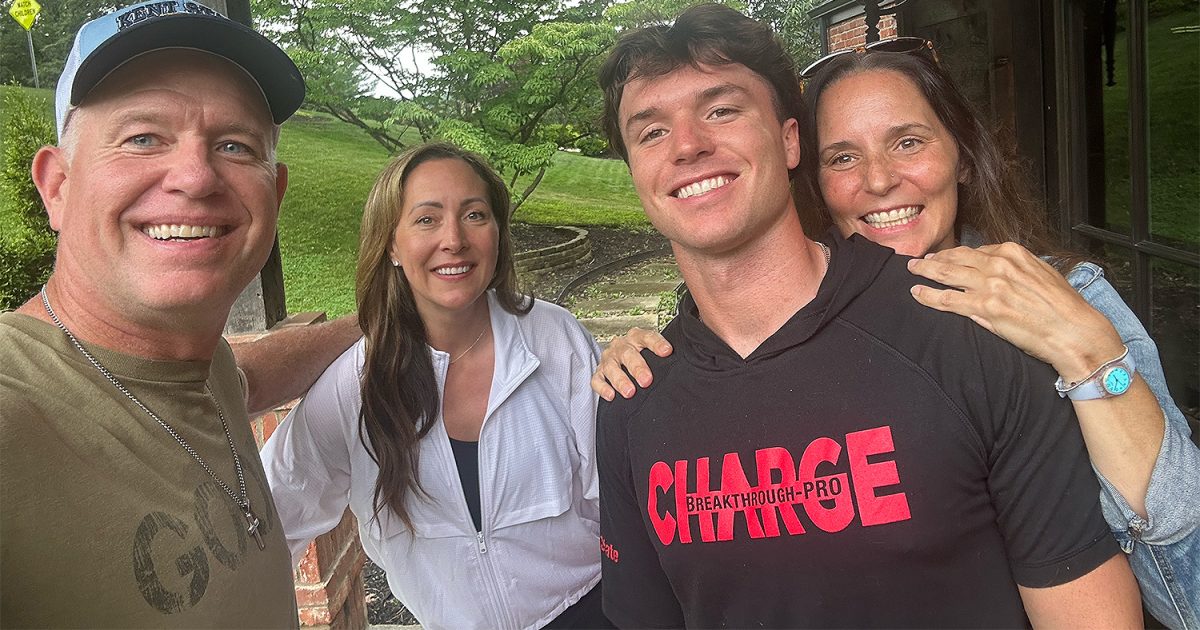 Jake Casey poses for a picture with his parents, Sean and Mandi, after learning he was selected by the Toronto Blue Jays in the MLB amateur draft.