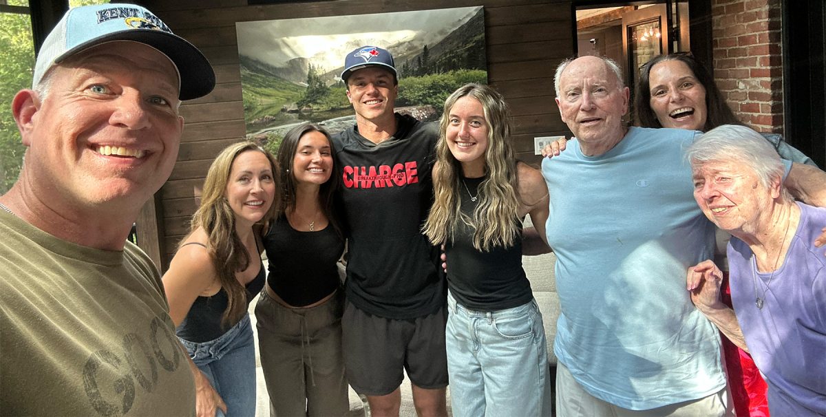 The Casey Clan react after hearing Jake’s name being called during the 2025 MLB amateur draft. Jake (third from left) was picked by the Toronto Blue Jays. With him are: Sarah (step-mom), Sean, (dad), Haley Adamczak (girlfriend), Carli (sister) and Mandi (mom)