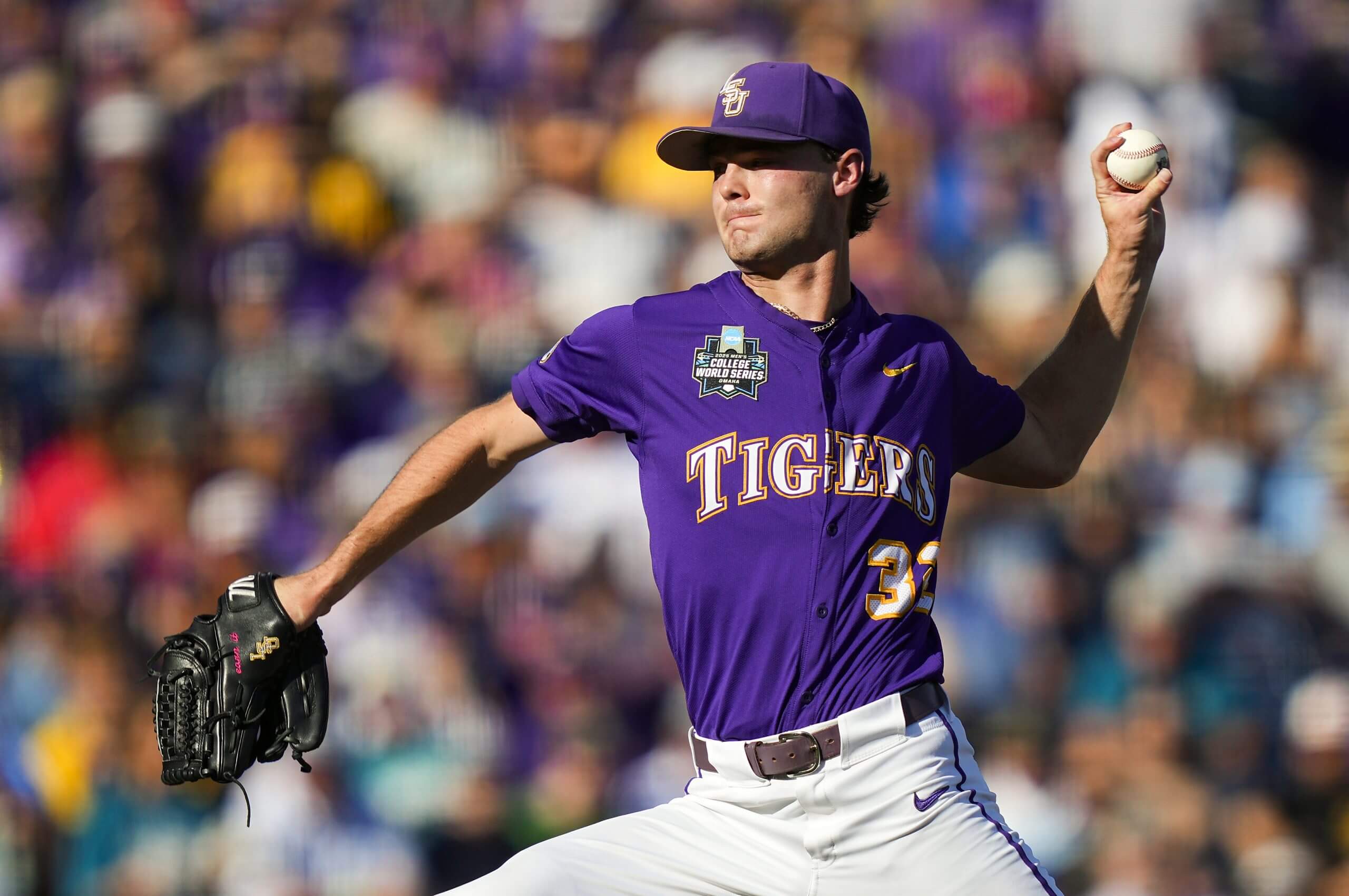 The Mariners landed the player I thought was going to go first, LSU lefty starter Kade Anderson (1), who was a major reason the Tigers won their umpteenth College World Series. Anderson works at 91-95 with two fastballs and throws a slider and curveball, as well as a changeup that was one of the best in the class. I had one analyst tell me this spring he thought Anderson’s pitches graded out the best based on their characteristics when taken as a group out of any pitcher’s arsenal in the draft. He was worked hard by LSU, as they do down there, but he competed as well as any pitcher I saw this spring. He should be in the majors by the end of next year.
