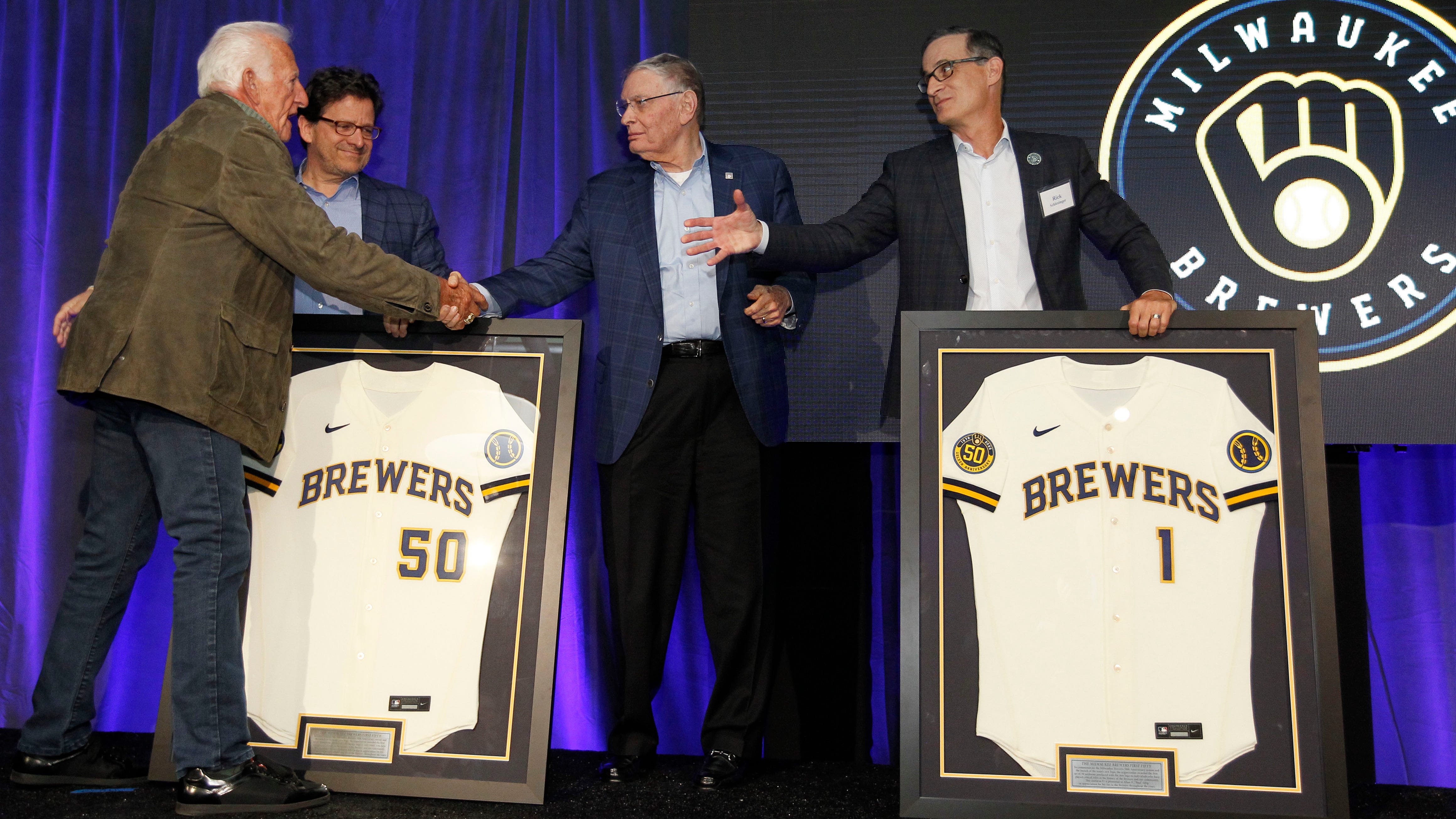 Brewers owner Mark Attanasio honors Bob Uecker ahead of home opener