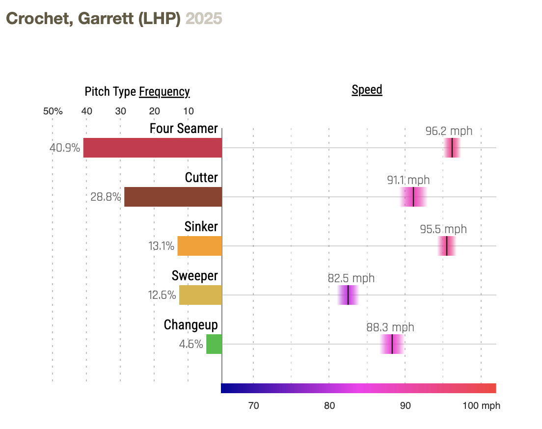 Garrett Crochet is currently leading the American League in ERA, ERA+, innings and strikeouts, and is a strong Cy Young candidate.