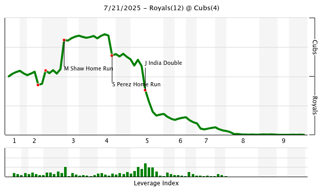 The Cubs peaked at an 84.8 percent chance of winning in the top of the fourth. It was all downhill from there.