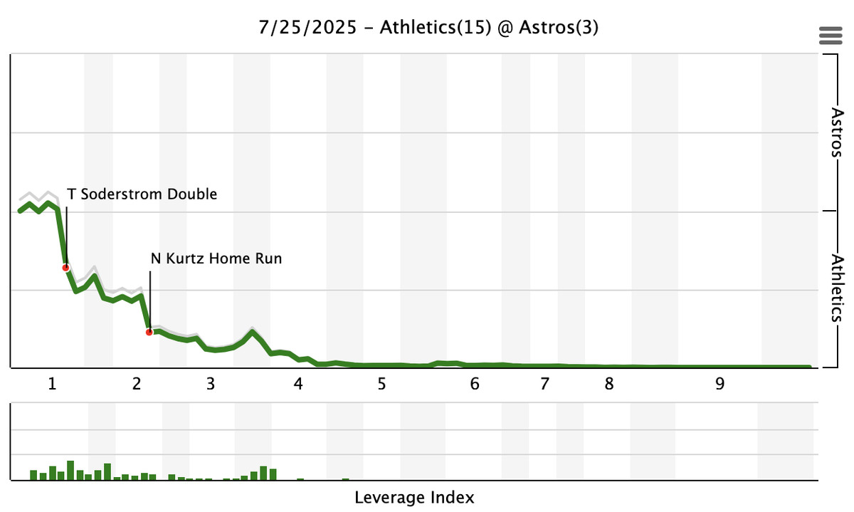 A rough game all the way around for the Astros, who also placed Brandon Walter on the IL on Friday. 18 players now on the IL by my last count. Hopefully, reinforcements arrive sooner rather than later. Now, excuse me while I root for the Angels for the remainder of the evening. Hunter Brown starts Saturday with Jacob Lopez getting the nod for the A’s.