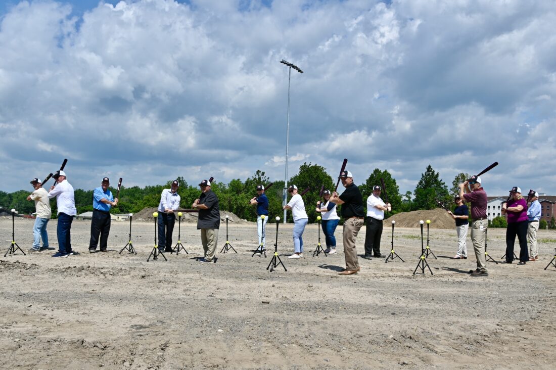 Following the remarks, those involved in the project put bat to ball, taking a ceremonial first swing into the site’s future.