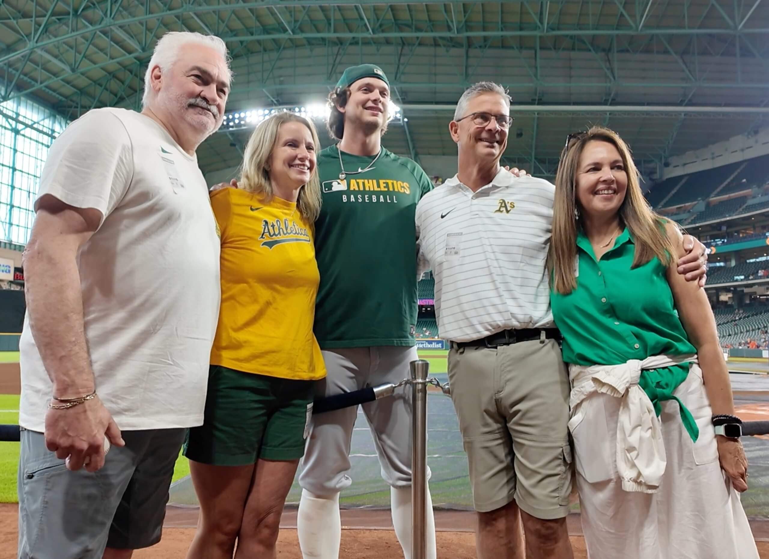 Nick was nursing a hip flexor and unavailable to play when the A’s came to Houston in late May, so the godparents decided to see him on Friday. After the game, Nick joked, “They probably have to come (to my games) for the rest of the year.”