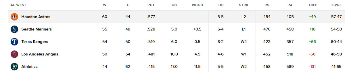 Here are the standings in the AL West: