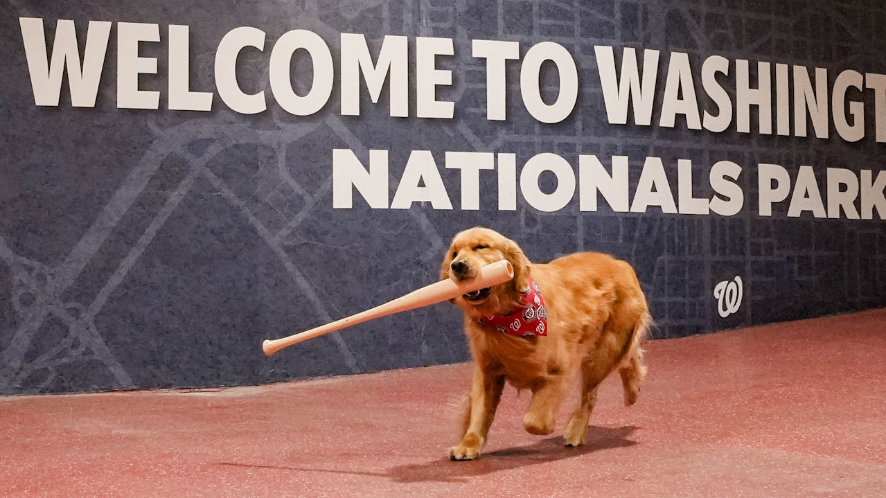 Bruce the bat dog joined the Washington Nationals for his first big league assignment, an honorary bat retrieval.