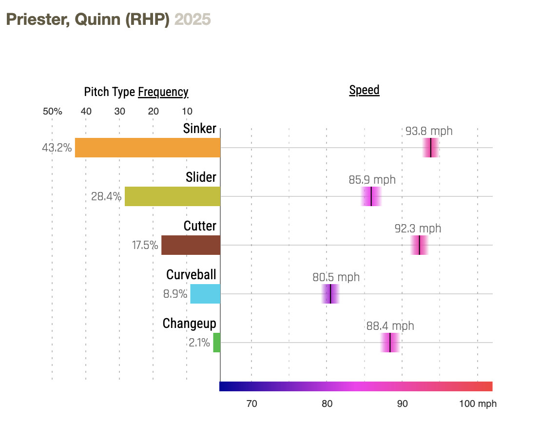 The Cubs hit Priester pretty hard May 2 in Milwaukee — seven runs in four-plus innings after the Brewers used an opener before he came into the game. That included home runs by Michael Busch and Pete Crow-Armstrong. It was the worst start of his career.
