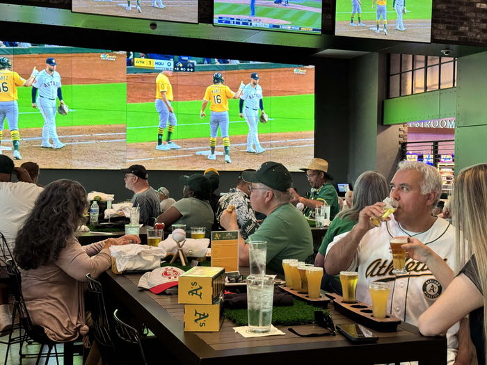 apparel cheered on the A’s while watching across more than 40 televisions