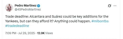 “Trade deadline: Alcantara and Suarez could be key additions for the Yankees, but can they afford it? Anything could happen,” Martinez said. The remark has reignited speculation about New York’s intentions — and whether the front office is ready to make a bold final move.