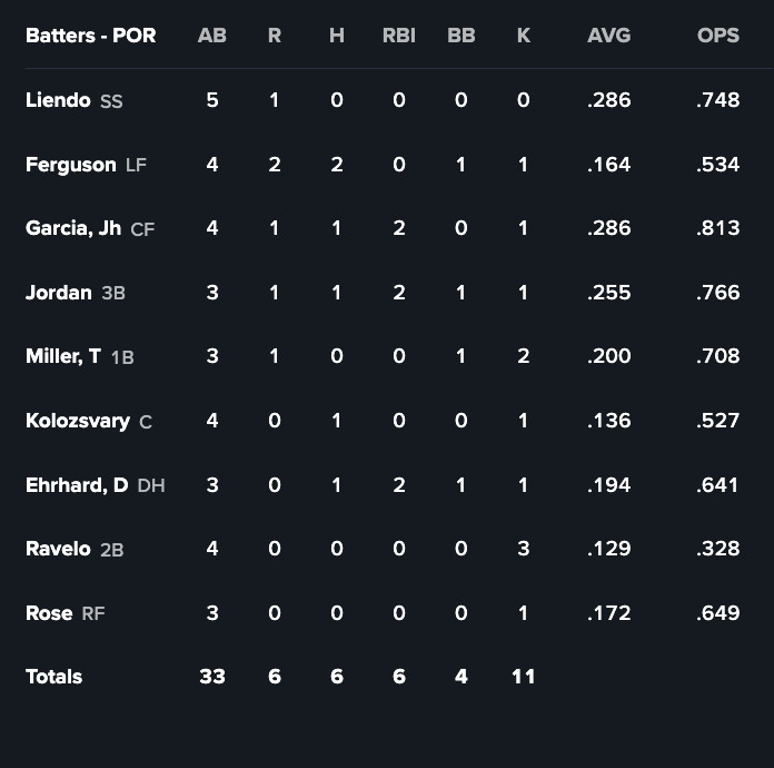 Portland: W, 6-5 (F/10) (BOX SCORE)