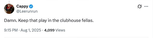 ‘Damn. Keep that play in the clubhouse fellas,’ a second person stated.Â