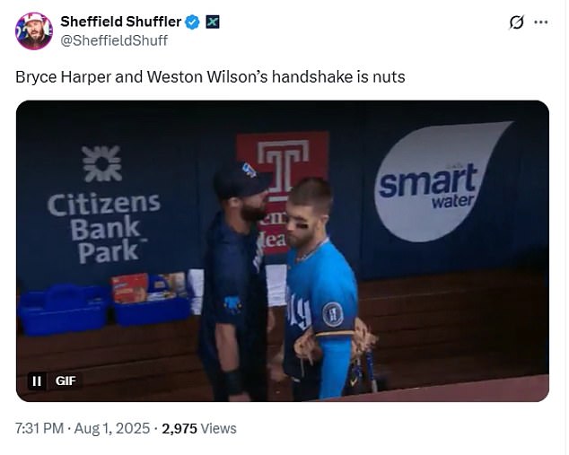 ‘Bryce Harper and Weston Wilson’s handshake is nuts,’ a fifth concluded.Â