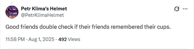 ‘Good friends double check if their friends remembered their cups,’ a third added.Â