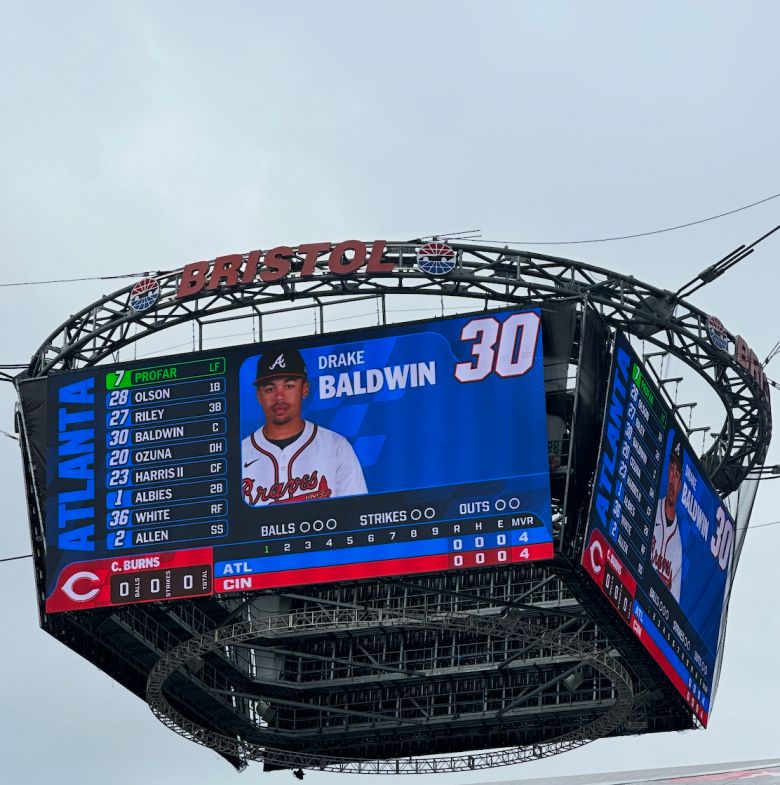 Playing against the Cincinnati Reds, the Atlanta Braves (46-63 overall and 16 games out of first place in the NL East) were not at Truist Park, where they have played their best baseball this season (26-26 overall). They were most however at home in Tennessee. Like most of the Southeast, particularly Georgia’s border states of Alabama and Tennessee, the baseball fans here are from Braves Country. Rain drenched the track and the outfield hours before the game, but by the time the National Anthem was being sung, fans were in their seats and a unique experiment and collaborations between sports giants, NASCAR and MLB was underway.