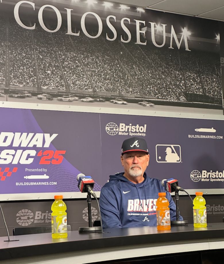 Atlanta Braves manager Brian Snitker took questions from the press before the first MLB Speedway Classic at Bristol Motor Speedway on Saturday, August 2, 2025. Photo by Donnell Suggs/The Atlanta Voice