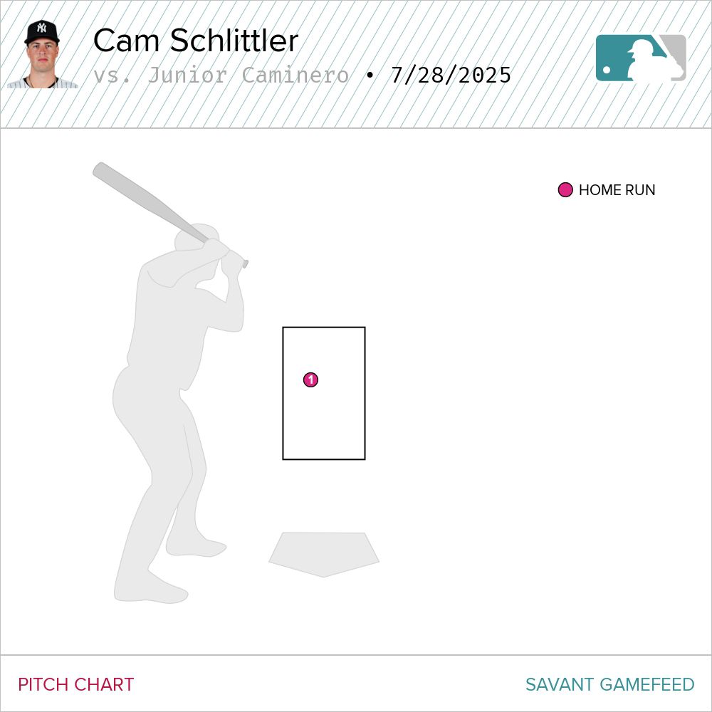 He got burned in the first inning by Junior Caminero, who took a hanging breaking ball into the left field stands to put the Rays up 2-0. In part, that’s just Junior Caminero, he’s going to be a nightmare for the Yankees for the next three years before the Rays deal him. In part though, Schlittler walked the preceding batter and made the mistake pitch: