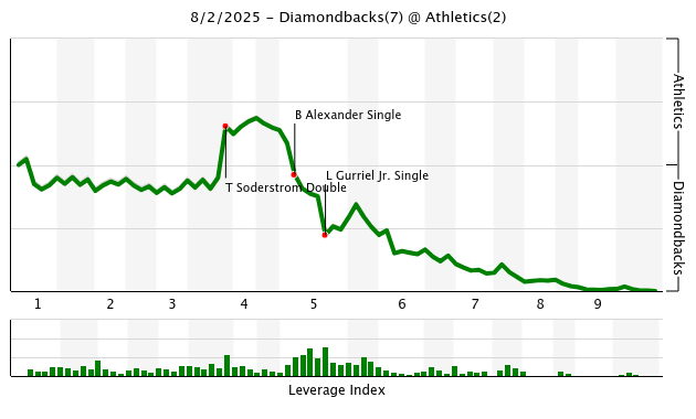 Anyway, thankfully Torey at least had Zac on a very short leash, and after Gallen gave up a leadoff single to the nine-hole hitter in the A’s lineup he was immediately replaced by Andrew Saalfrank, he of the 0.00 ERA through his first 71⁄3 innings. Saalfrank threw twelve pitches, recorded three outs, and improved that scoreless streak to 81⁄3 innings.