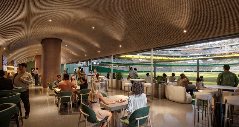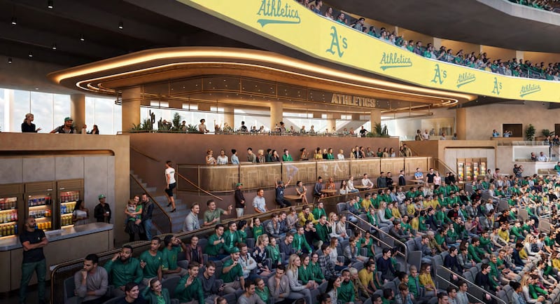 There are ideas borrowed from other venues, including the barrel room on the event level in the right outfield. The room, stretching 120 feet, has a barrel vault ceiling and is separated from the playing field only by the outfield fence, akin to the Cadillac Club at the Mets’ Citi Field. The A’s fence will be moveable, though, allowing private event guests to wander onto the playing field.
