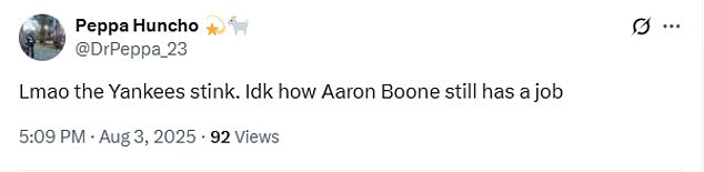 ‘Lmao the Yankees stink. Idk how Aaron Boone still has a job,’ a fifth concluded.Â